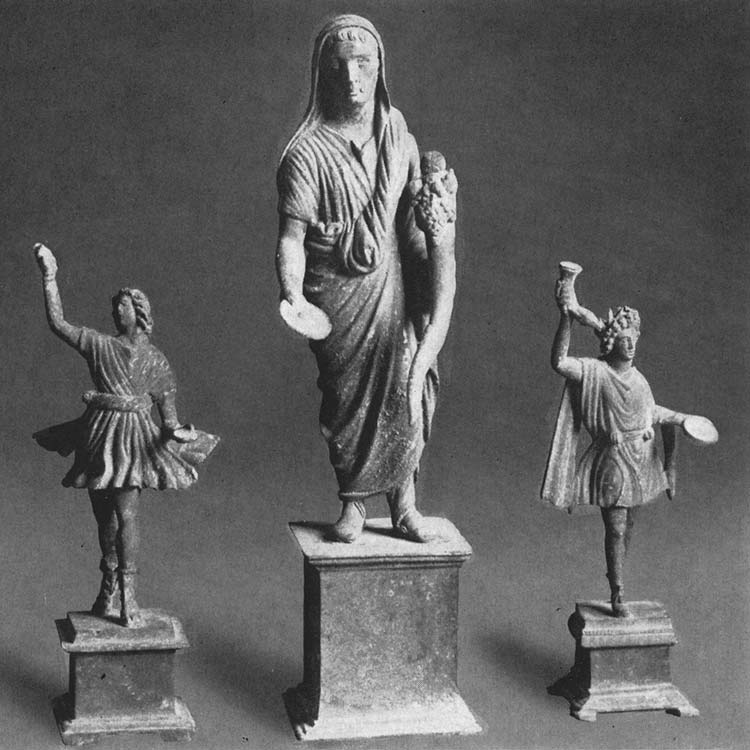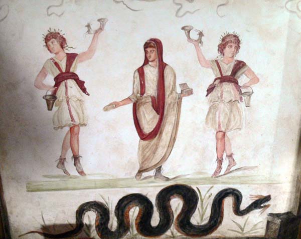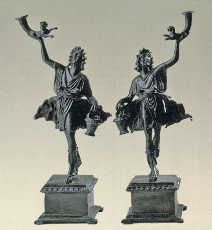 Иногда фамильные и соседские лары изображались в виде двух юношей в собачьих шкурах и с собакой (как бдительные хранители).